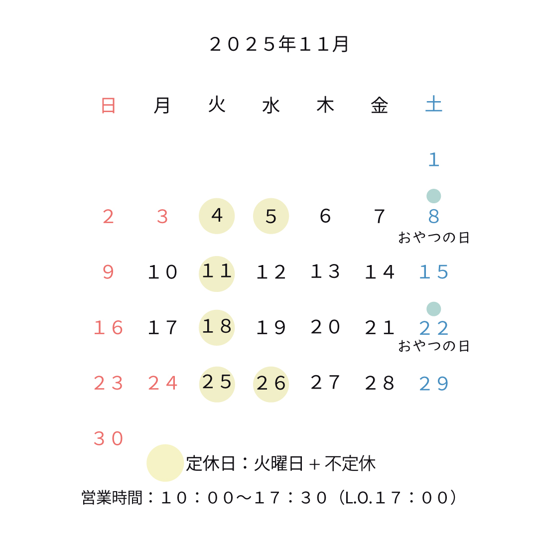 休業日:毎週火曜日定休+11/5(水)・11/26(水)