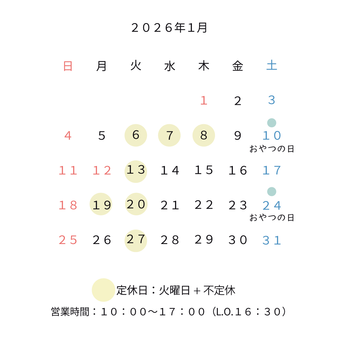 1月・営業日のお知らせ