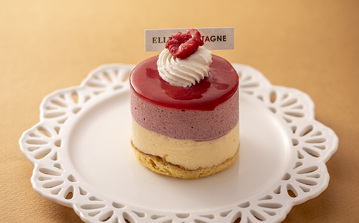カシスとフランボワのムースに、マダガスカル産のなめらかなバニラムースを重ねた、ベリー香るケーキ。トップにはフランボワのジュレ。