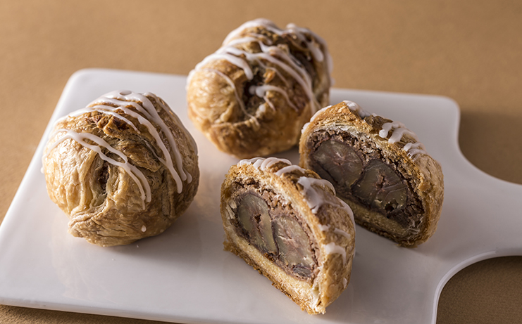 【土・日・祝日限定】今秋も人気のマロンパイが始まりました。大粒の和栗をまるごと1個自家製のパイ生地で包んで焼き上げた、秋だけの贅沢な味わいです。